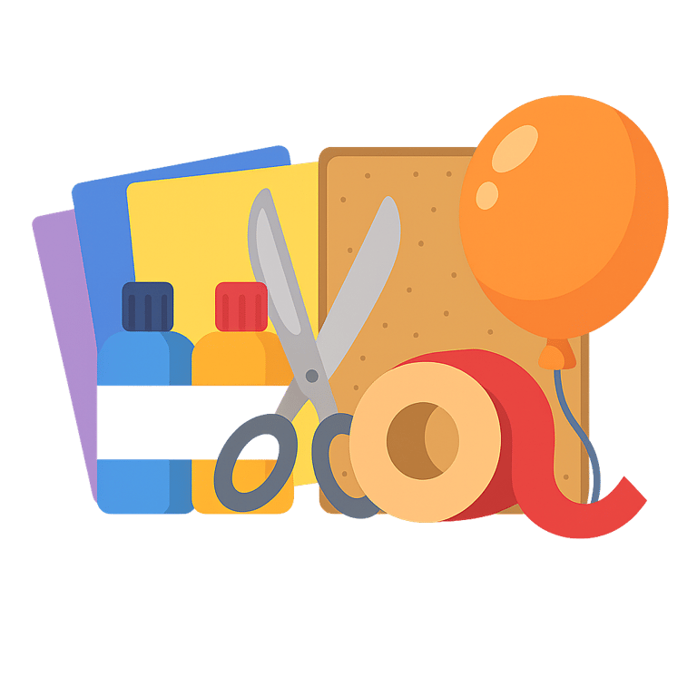Você não precisa de tudo caro para começar: com papéis, tintas, MDF, fitas e balões simples, já dá para criar festas incríveis!